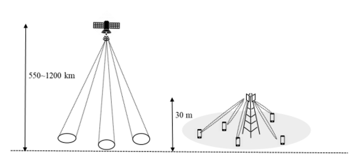图 3 卫星波束与蜂窝基站覆盖方式对比